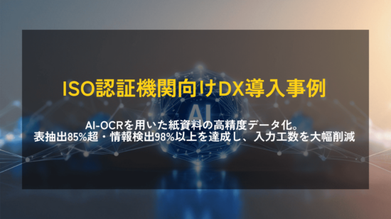 【ISO認証機関向けDX導入事例】AI-OCRを用いた紙資料の高精度データ化。表抽出85%超・情報検出98%以上を達成し、入力工数を大幅削減